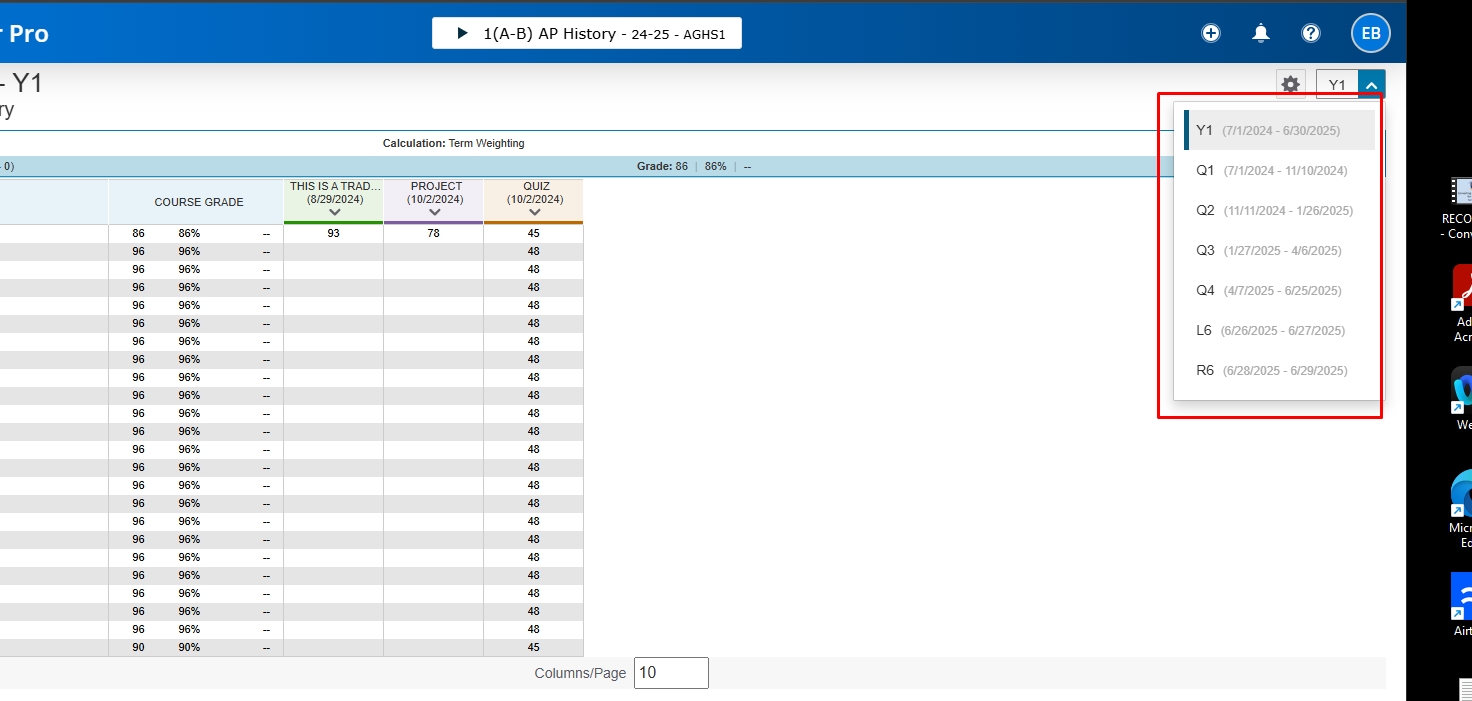 The dates in our PowerSchool account for years and terms are correct; however, they are not reflected in the dates on PowerTeacher Pro. How do I fix this issue?